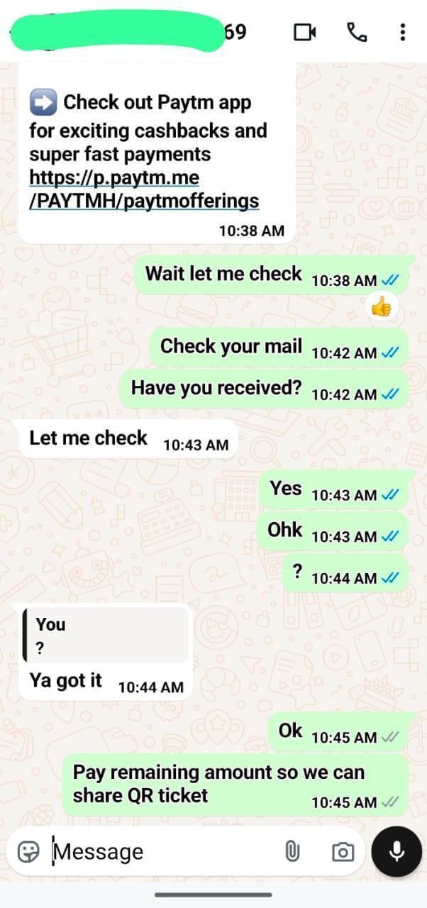 विश्वास जीतने के लिए, गर्ग ने टिकटों के कई स्क्रीनशॉट भेजे। रिपोर्टर ने उसे भरोसे में लेने के लिए कहा कि वह भी कुछ टिकट आगे बेचकर मुनाफा कमाना चाहता है, इसलिए वह मिलकर डील करना चाहता है। इस पर गर्ग ने कहा, “आप पहले टिकट ले लीजिए, फिर आप उन्हें आगे बेच लेना, लेकिन बुकिंग का तरीका ऑनलाइन ही रहेगा।”