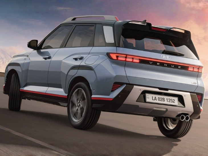 - रियर: स्टैंडर्ड वेन्यू के मुकाबले इसमें चौड़ा विंग-टाइप रूफ स्पॉइलर दिया गया है। इसमें ग्लॉस ब्लैक पैनल पर कनेक्टेड LED टेललैंप्स दिए गए हैं और इस पर ‘वेन्यू’ बैजिंग भी मिलती है। SUV में पीछे की तरफ डुअल-टिप एग्जॉस्ट भी दिया गया है।