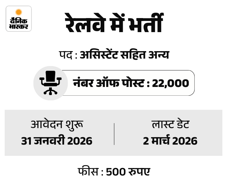 1. रेलवे में 22,000 पदों पर रजिस्ट्रेशन के लिए आवेदन की तारीख बढ़ी