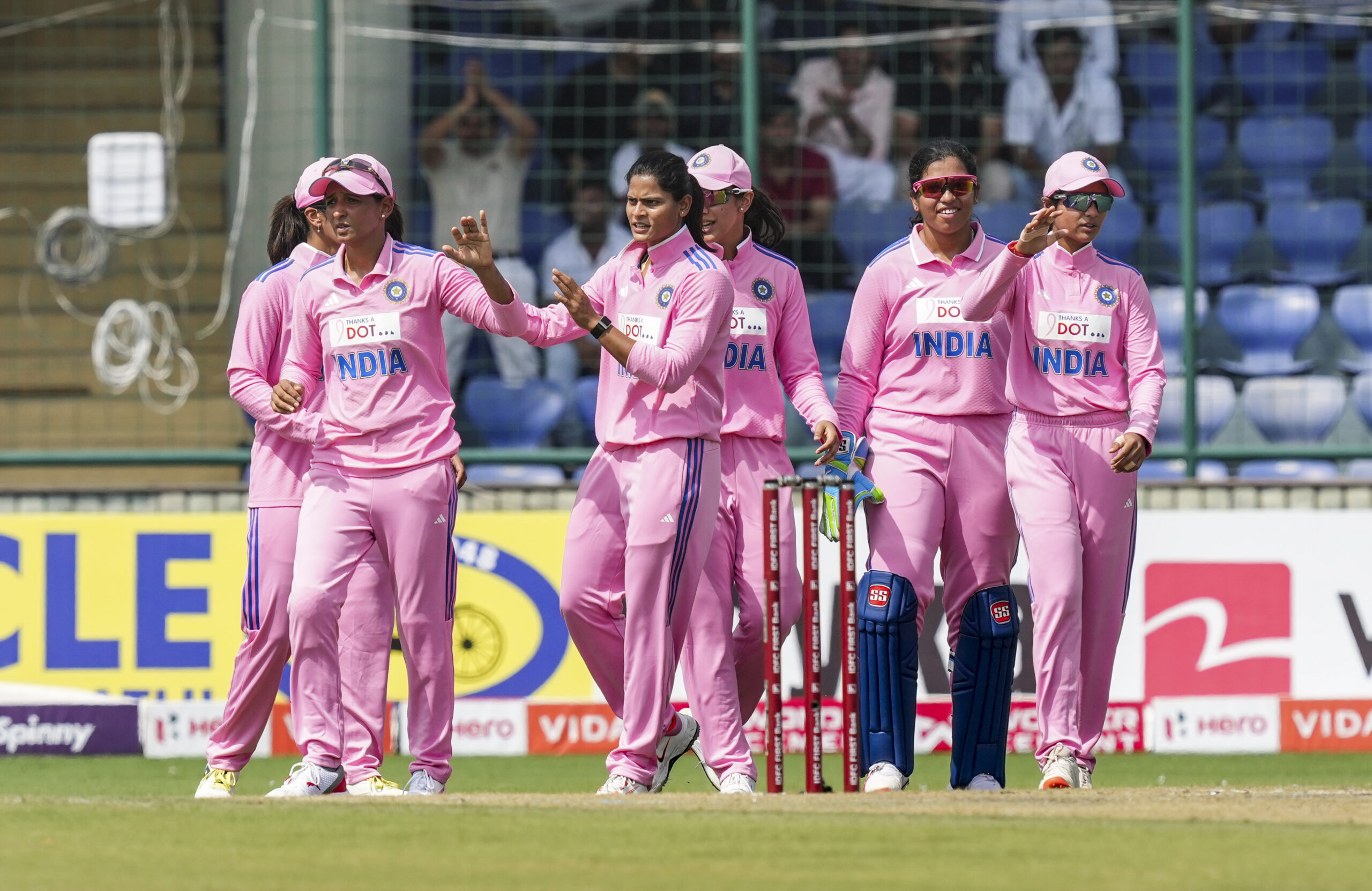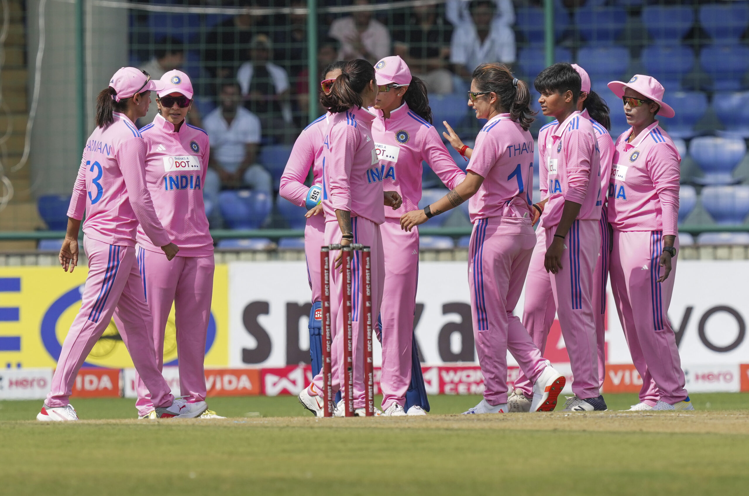 ब्रेस्ट कैंसर अवेयरनेस के लिए इंडिया विमेंस टीम पिंक जर्सी पहनकर खेलने उतरी।