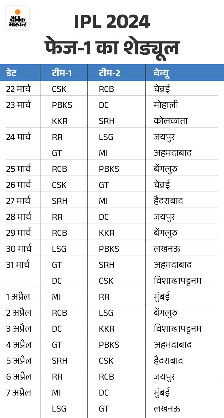 24 मार्च को LSG से पहला मैच