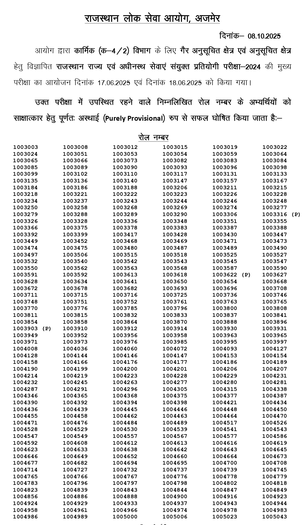किस-किसका हुआ सिलेक्शन, देखें रोल नंबर…