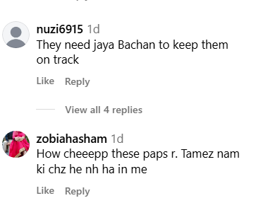 अब पैपराजी की इस हरकत पर इंटरनेट यूजर्स जमकर उन्हें लताड़ रहे हैं। एक यूजर ने लिखा- ‘इन्हें ट्रैक पर लाने के लिए जया बच्चन की जरूरत है।’ एक अन्य यूजर ने लिखा- ‘ये पैप्स कितने घटिया हैं। तमीज नाम की चीज ही नहीं है इनमें।’ एक यूजर ने प्राइवेसी का सवाल उठाते हुए लिखा- ‘उन्हें इस तरह मोबाइल से रिकॉर्डिंग करने की अनुमति कौन देता है?’ वहीं एक यूजर ने इसे पूरी तरह से हैरेसमेंट बताया है।