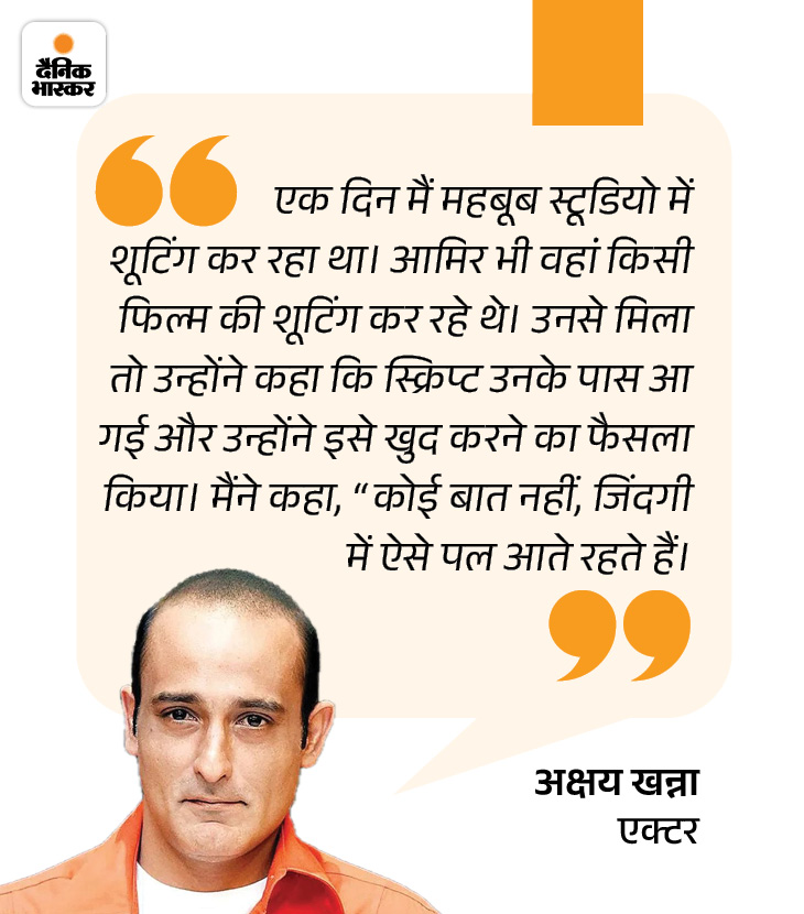 आमिर ने उनसे कहा कि मैं तब तक किसी स्क्रिप्ट को रेकेमेंड नहीं कर सकता, जब तक मैं खुद उसे न सुन लूं। इसलिए पहले मुझे सुनाओ और अगर यह मुझे पसंद आ गई तो अक्षय को बताऊंगा। आमिर को ये स्क्रिप्ट इतनी पसंद आई कि उन्होंने ही खुद वो फिल्म कर ली