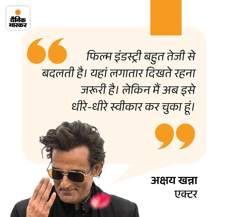 अक्षय खन्ना कहते हैं- मैंने कुछ समय के लिए खुद ही फिल्मों से दूरी बना ली थी। उस वक्त शायद लगा कि ब्रेक लेना ठीक रहेगा, लेकिन बाद में समझ आया कि इंडस्ट्री में अगर आप रुक जाते हैं, तो लोग मान लेते हैं कि आप अब काम नहीं कर रहे। फिर वापसी करना आसान नहीं होता। जब मैं वापस आया, तो मुझे काम मिलने में दिक्कत हुई।