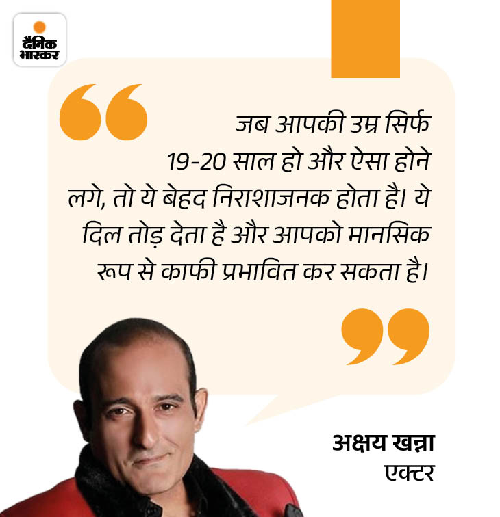 अक्षय खन्ना के करियर का सबसे कठिन दौर वह भी था जब उन्हें कम उम्र में ही गंजेपन का सामना करना पड़ा। मिड-डे को दिए इंटरव्यू में अक्षय खन्ना ने कहा था।
