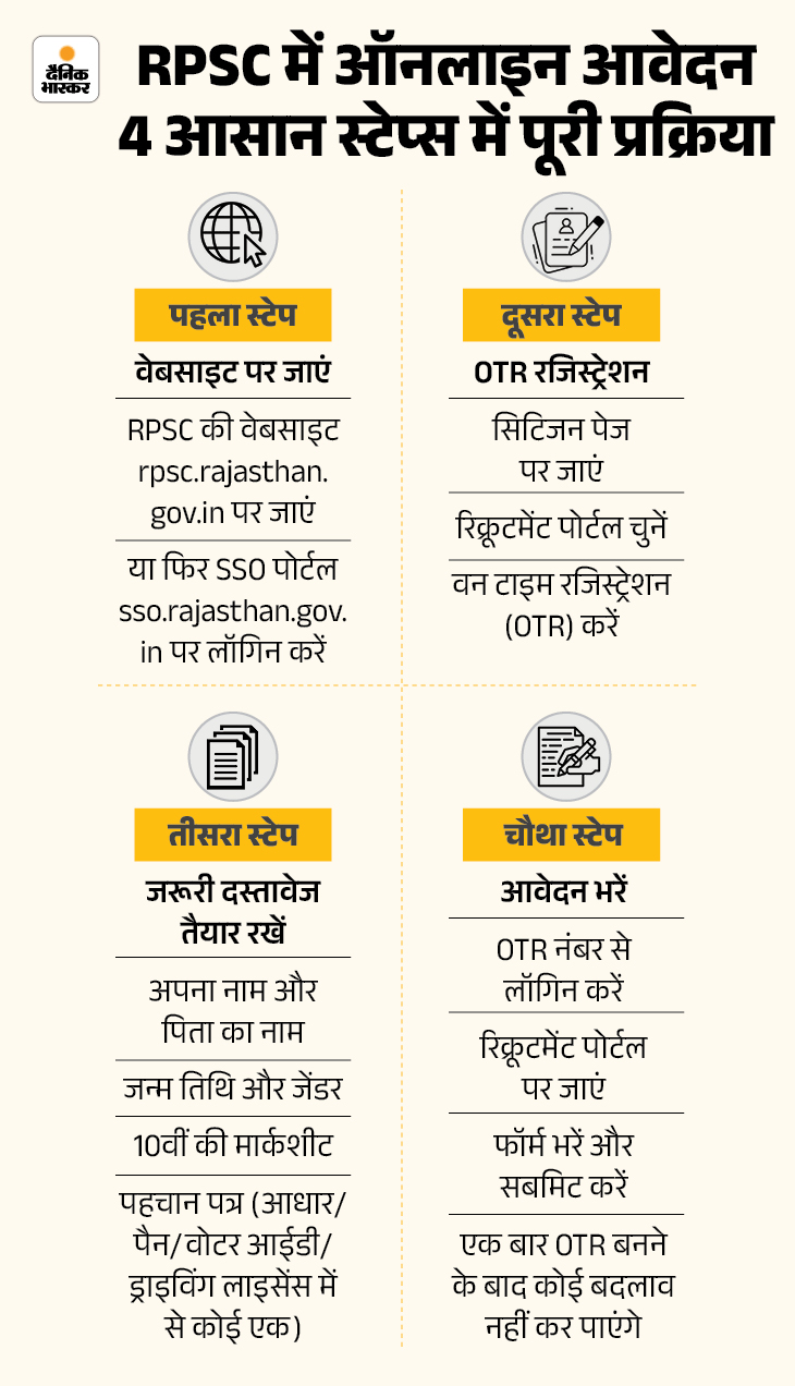 राजस्थान लोक सेवा आयोग की ओर से निकाली गई संरक्षण अधिकारी (महिला एवं बाल विकास विभाग) के 12 पदों पर भर्ती के लिए कल यानि 24 दिसंबर से आवेदन किए जा सकेंगे। इसके लिए लास्ट डेट 22 जनवरी है।