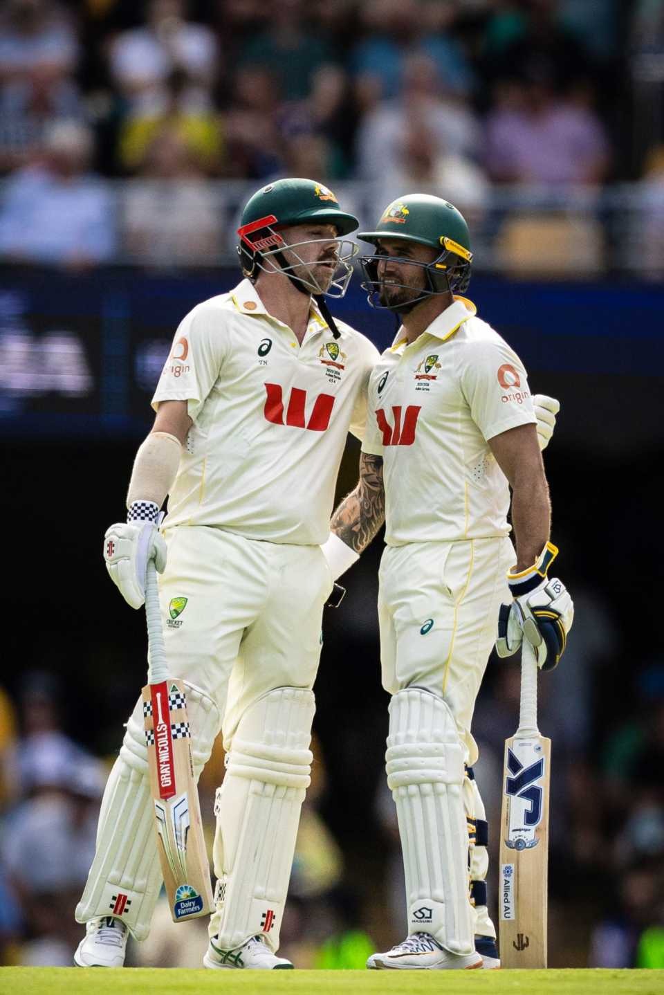 ऑस्ट्रेलिया की अच्छी शुरुआत ऑस्ट्रेलिया के ओपनर्स ट्रैविस हेड और जेक वेदरल्ड ने तेज शुरुआत दिलाई। दोनों ने पहले विकेट के लिए 77 रन जोड़े। हेड 33 रन बनाकर आउट हुए। उन्होंने 43 गेंदों में 3 चौके और 1 छक्का लगाया। ब्रायडन कार्स की गेंद पर गस एटकिंसन ने उनका कैच पकड़ा।