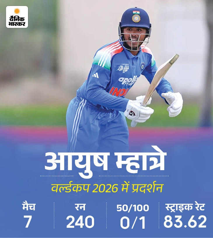 आयुष इस साल भारत को अंडर-19 वर्ल्ड कप जीतने वाली टीम के कप्तान थे। हालांकि, IPL 2026 की शुरुआत उनके लिए अच्छी नहीं रही और राजस्थान रॉयल्स के खिलाफ वे बिना खाता खोले आउट हो गए।