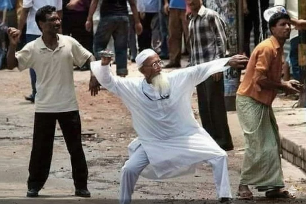 जून 2006 में ढाका में प्रदर्शन के दौरान पत्थर फेंकते हुए लोग।