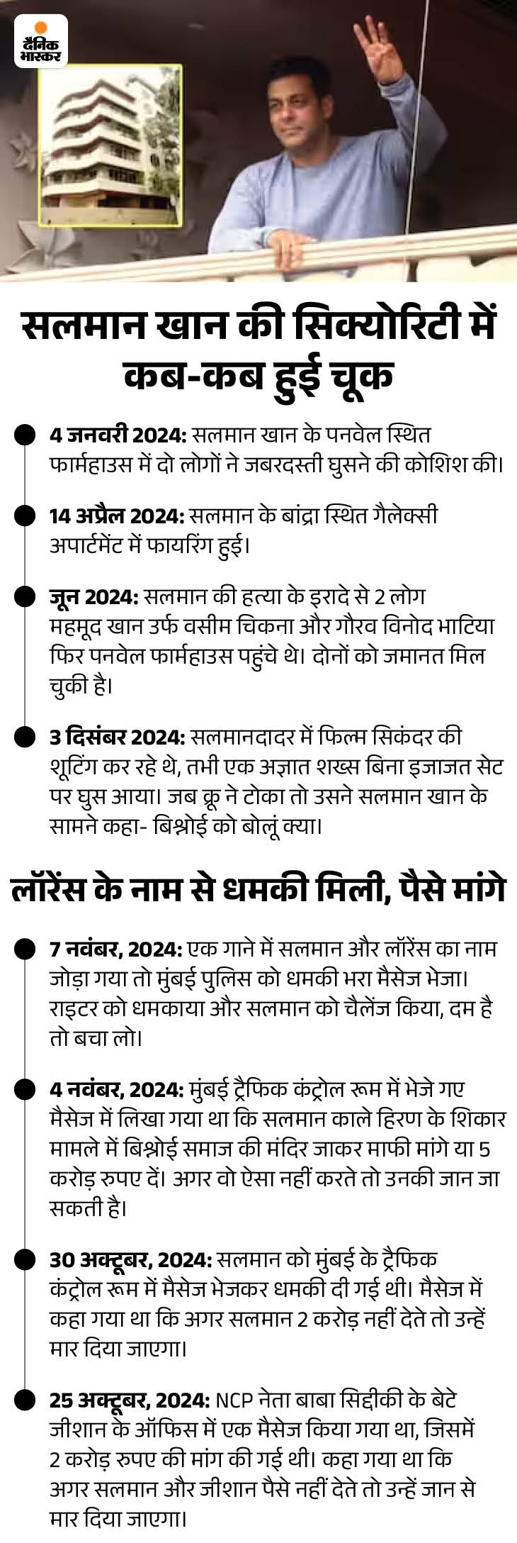 बताते चलें कि सलमान खान को पिछले कुछ समय से लॉरेंस गैंग की धमकियां मिल रही हैं, यही वजह है कि वो कड़ी सिक्योरिटी में रहते हैं।