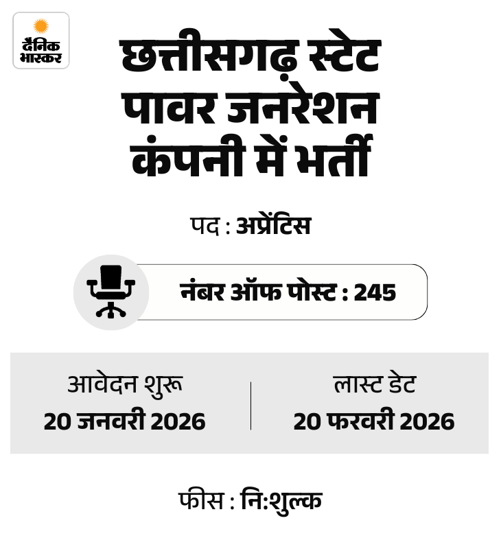 छत्तीसगढ़ राज्य पावर डिस्ट्रीब्यूशन कंपनी लिमिटेड में 245 पदों पर भर्ती निकली है। उम्मीदवार ऑफिशियल वेबसाइट cspc.co.in पर जाकर आवेदन कर सकते हैं। यह ट्रेनिंग एक साल के लिए दी जाएगी।
