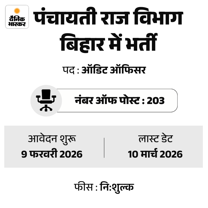 2. पंचायती राज विभाग, बिहार में 203 पदों पर भर्ती