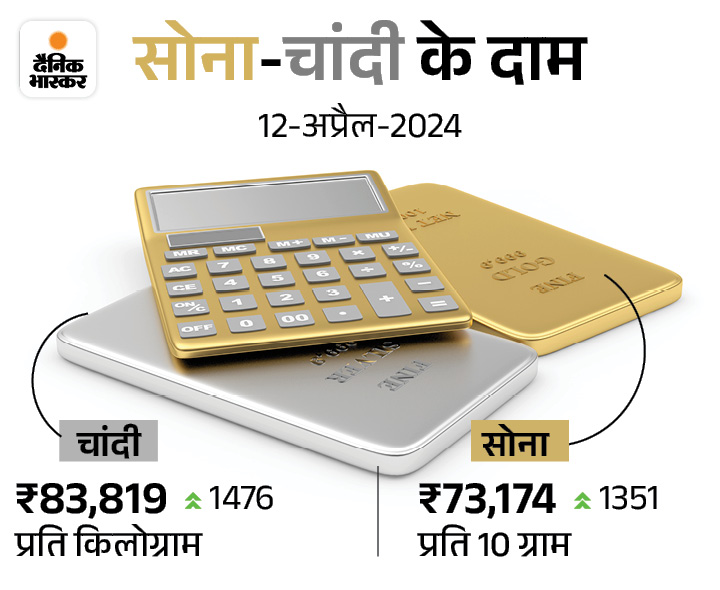 वहीं, सोने की कीमत पहली बार 73 हजार रुपए प्रति दस ग्राम से ज्यादा हो गई है। शुक्रवार (12 अप्रैल) को इंडिया बुलियन एंड ज्वेलर्स एसोसिएशन (IBJA) की वेबसाइट के मुताबिक, शुक्रवार को 10 ग्राम सोना 1,351 रुपए महंगा होकर 73,174 रुपए का हो गया है।