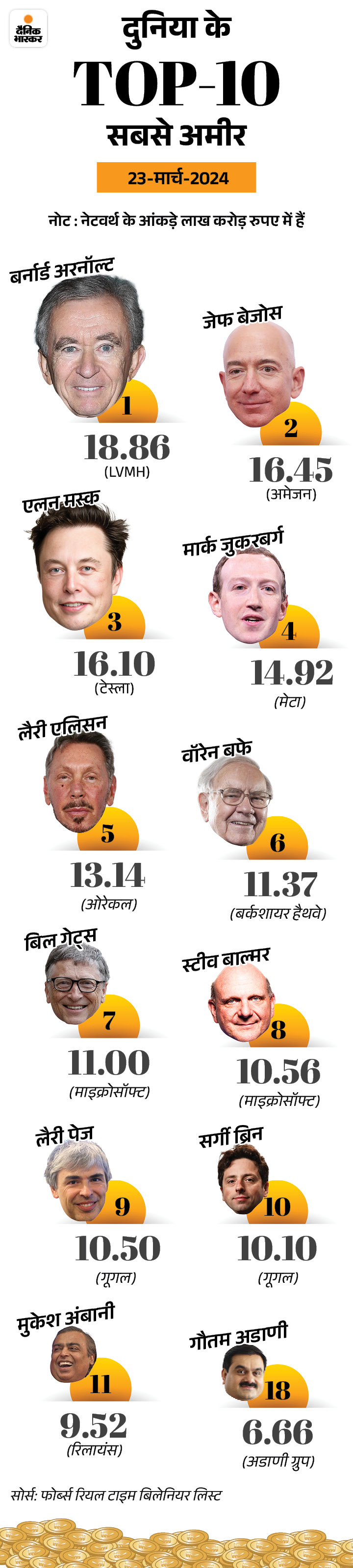 कल दुनिया के टॉप-10 सबसे अमीर कौन रहे यह भी देख लीजिए …