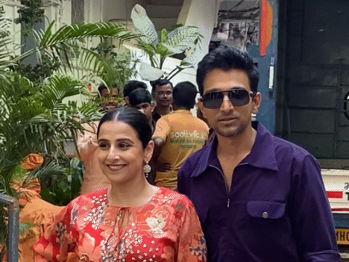 विद्या बालन और प्रतीक गांधी अपनी अपकमिंग फिल्म दो प्यार दो के प्रमोशन के सिलसिले में क्रोम स्टूडियो पहुंचे।