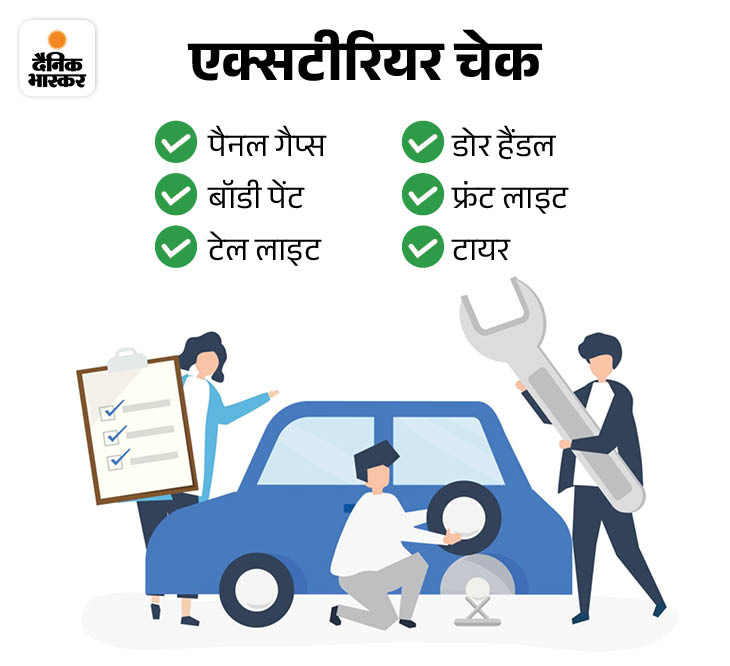 • कार के चारों ओर घूमकर देखें कि इसमें कोई स्क्रेच या डेंट तो नहीं है। खासकर बंपर और कार के किनारों पर जरूर ध्यान दें।