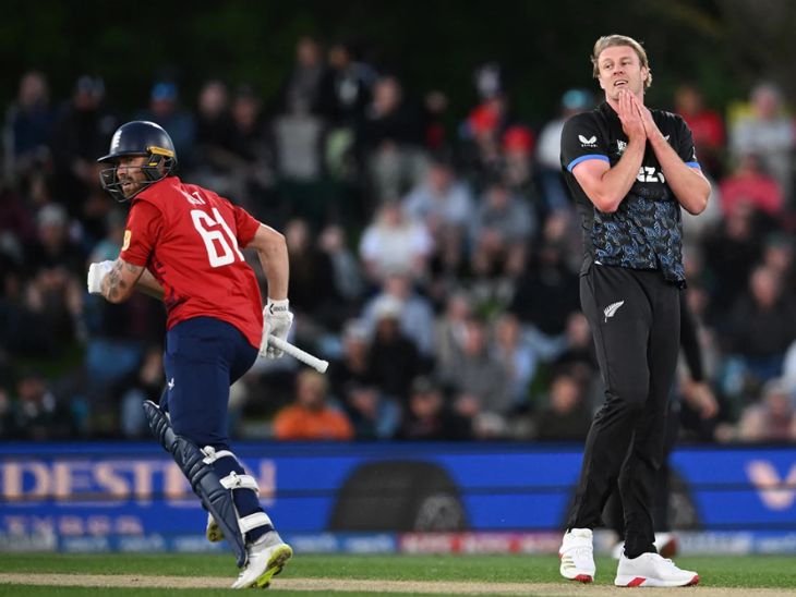 बटलर दूसरे ओवर में आउट हुए हैगले ओवर में न्यूजीलैंड ने टॉस जीतकर बॉलिंग चुनी। इंग्लैंड ने दूसरे ही ओवर में विकेटकीपर जोस बटलर का विकेट गंवा दिया। वे 3 गेंद पर 4 रन ही बना सके। नंबर-3 पर उतरे जैकब बेथेल ने फिर फिल सॉल्ट के साथ टीम को 50 रन के पार पहुंचा दिया। बैथेल ने 12 गेंद 24 रन बनाए।