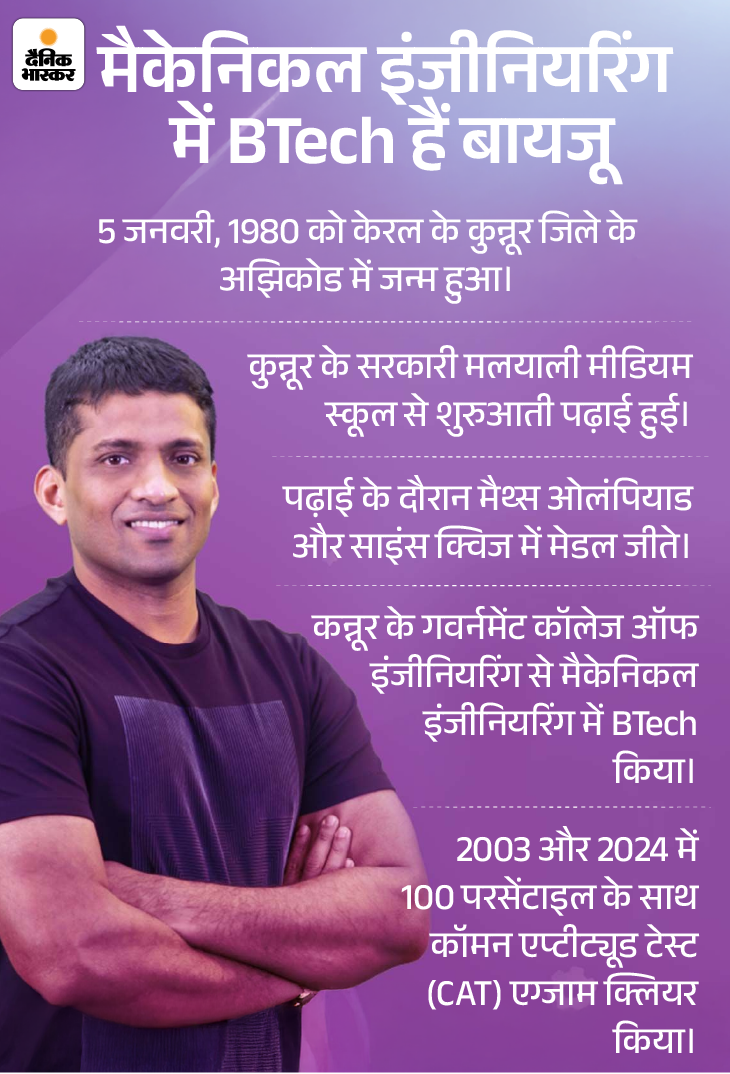 बायजू ने 2003 और 2004 में 100 परसेंटाइल के साथ CAT क्लियर किया।
