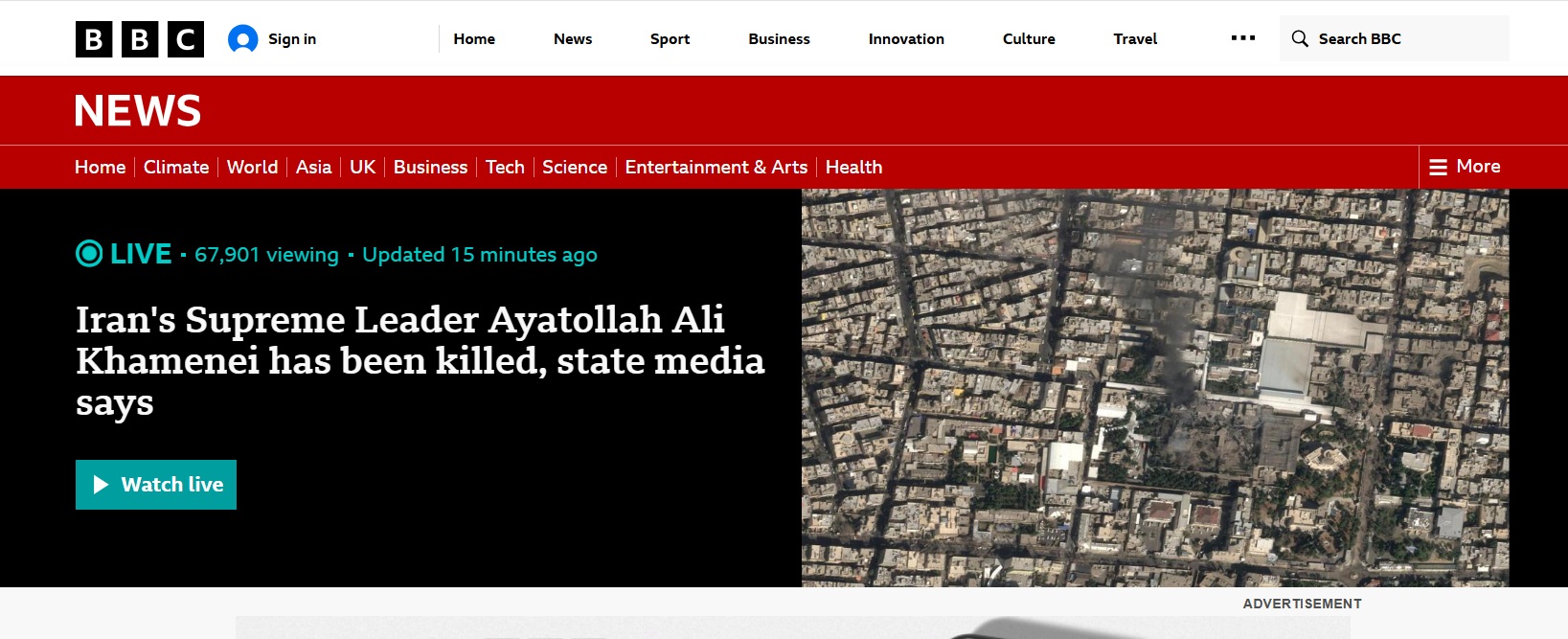 BBC ने इस घटना को कवर करते हुए लिखा कि ईरानी सरकार ने रविवार को बताया कि अमेरिका और इजरायल के हमलों में अयातुल्ला अली खामेनेई की मौत हो गई है। खामेनेई दशकों से देश के सुप्रीम लीडर थे और इजरायल व अमेरिका के कट्टर दुश्मन माने जाते थे।