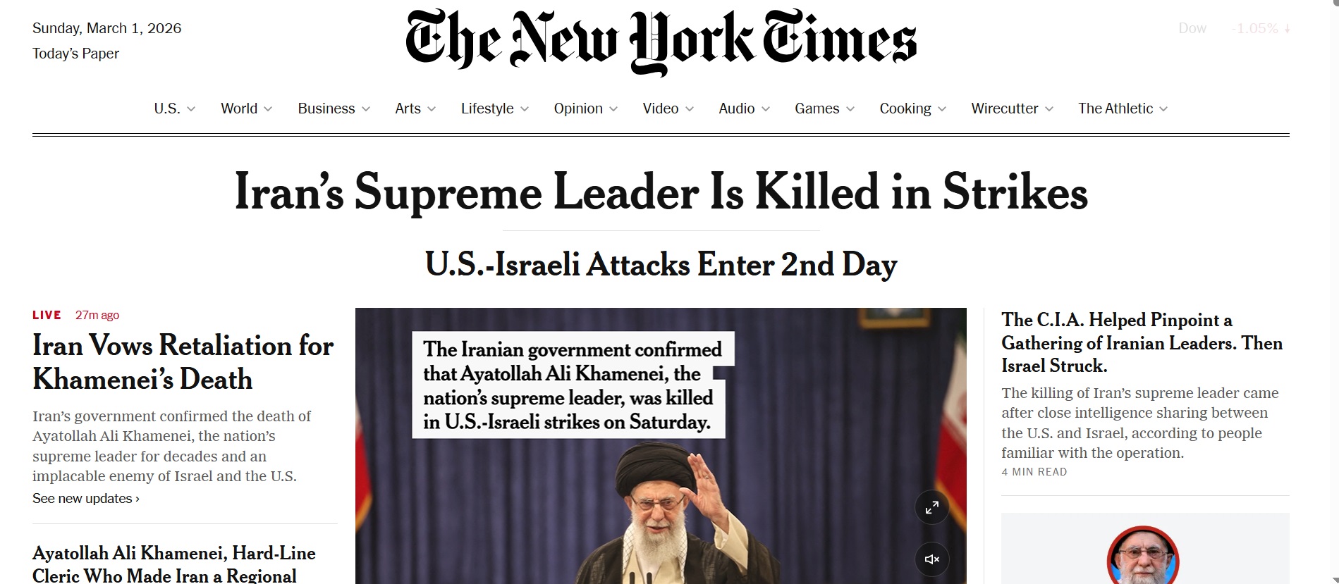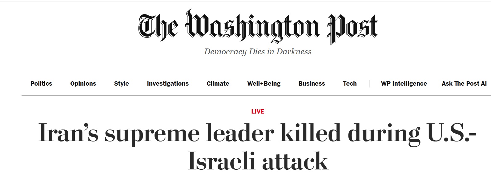 4. वाशिंगटन पोस्ट: ईरान के सुप्रीम लीडर की U.S.-इज़रायली हमले में मौत
