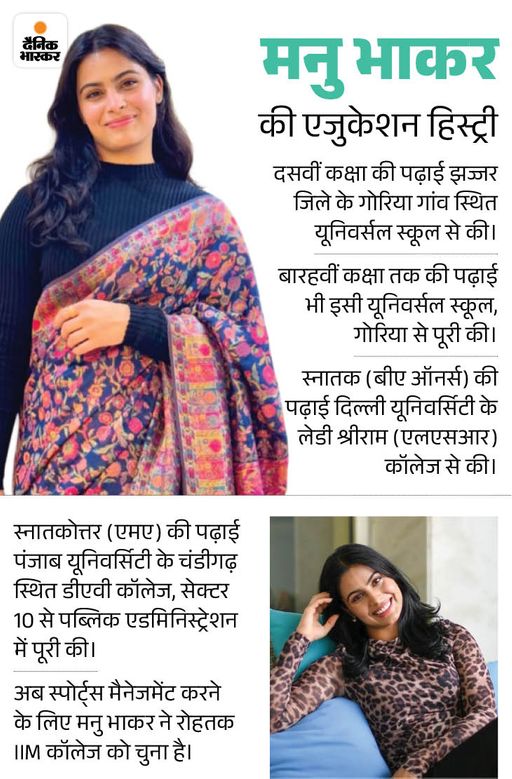 - पिता बोले- मनु पढ़ाई से रिलेटेड फैसले खुद करती हैं: मनु भाकर के पिता रामकिशन भाकर ने बताया कि मनु का अपनी पढ़ाई पूरी करने हमेशा से मन रहा है। स्पोर्ट्स के साथ उसने कभी अपनी पढ़ाई नहीं छोड़ी। ये एक अच्छी बात है कि मनु ने आगे की पढ़ाई के लिए स्पोर्टस मैनेजमेंट बिजनेस कोर्स ही चुना है। पढ़ाई को लेकर हमने भी हमेशा मनु की चॉइस को माना है। उसने दिल्ली यूनिवर्सिटी का LSR कॉलेज इसलिए चुना था, ताकि वहां पर किसी प्रकार की कोई परेशानी न हो। वह एक महिला कॉलेज है। मनु ने अपनी मास्टर डिग्री के लिए भी पब्लिक एडमिनिस्ट्रेशन सब्जेक्ट अपनी भी अपनी इच्छा से ही चुना था।