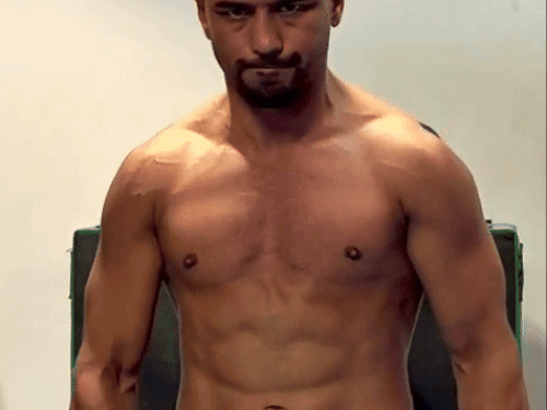 दुबई के ड्यूटी फ्री टेनिस स्टेडियम में नीरज गोयत अमेरिकी बॉक्सर एंथनी टेलर को पछाड़ते हुए।