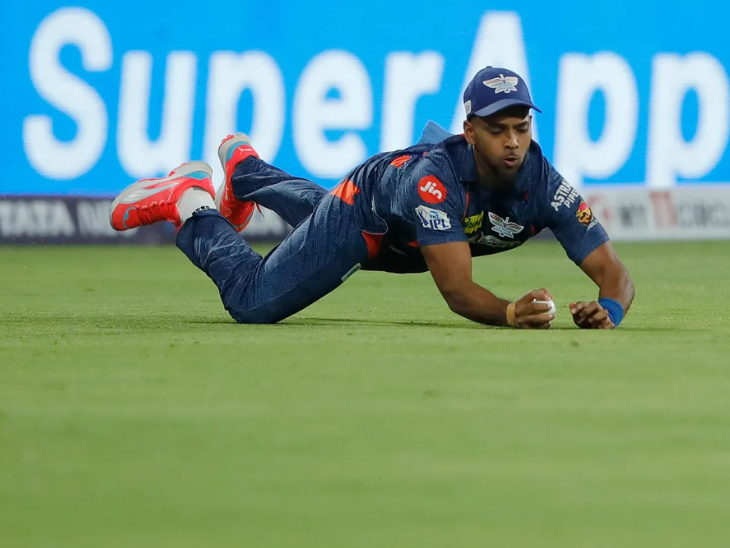 निकोलस पूरन ने दूसरी पारी में शानदार रनिंग और डाइविंग कैच लेकर पृथ्वी शॉ को चलता किया। 7वें ओवर की आखिरी बॉल पर रवि बिश्नोई ने शॉ को मिडिल स्टंप पर फुल डिलीवरी फेंकी, इस पर पृथ्वी शॉ एक बड़े स्लॉग-स्वीप के लिए गए। उन्होंने गेंद को अच्छी तरह से हिट किया लेकिन टाइमिंग ठीक नहीं रही और गेंद डीप मिड-विकेट की ओर गई। डीप में फील्डिंग कर रहे पूरन दौड़ते हुए आगे आए और आगे की ओर डाइव लगाकर शानदार कैच लपका।