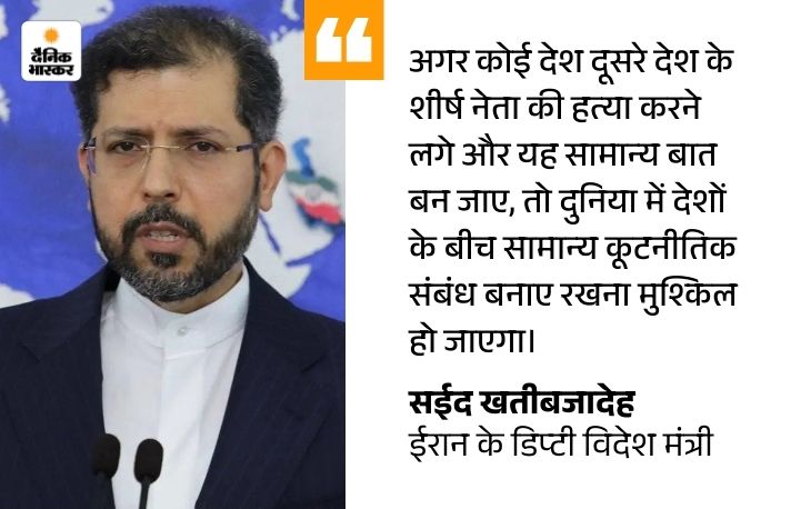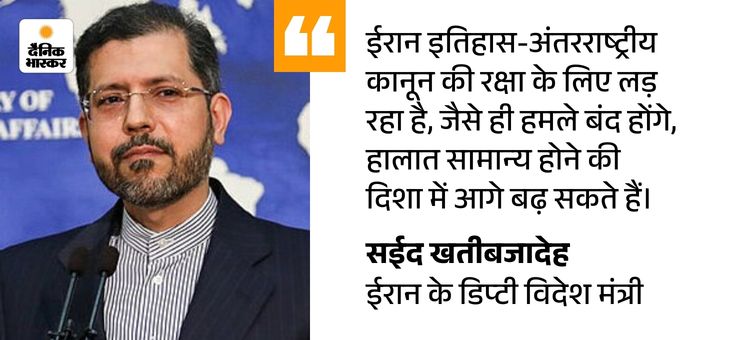 न्यूज एजेंसी ANI से चर्चा के दौरान खतीबजादेह ने कहा- ईरान इस समय पूरी तरह से युद्ध की स्थिति से गुजर रहा है। जब हम बात कर रहे हैं, मेरे साथी नागरिकों पर अमेरिका-इजराइल का लगातार हमला हो रहा है। मुझे लगता है कि अभी ईरान के लिए सबसे जरूरी बात यह है कि वह हमलावर के खिलाफ पूरी तरह से विरोध करे।
