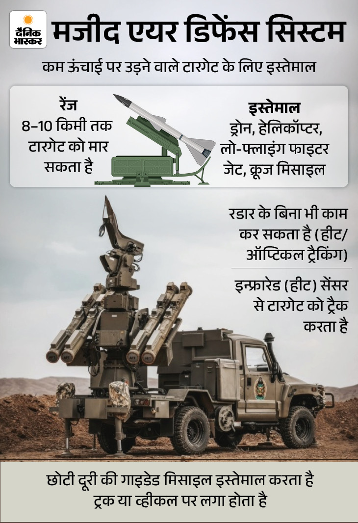 मजिद सिस्टम ईरान ने 2021 के आसपास इस्तेमाल करना शुरू किया था। इसे कम ऊंचाई पर उड़ने वाले टारगेट को निशाना बनाने के लिए बनाया गया है। इस सिस्टम की सबसे बड़ी खासियत यह है कि यह रडार पर निर्भर नहीं रहता, बल्कि इंफ्रारेड तकनीक का इस्तेमाल करता है।