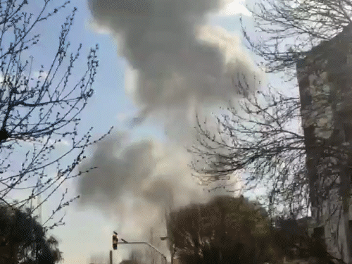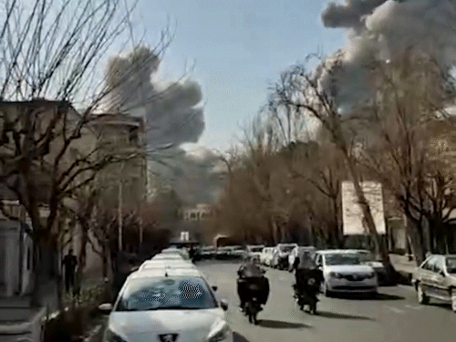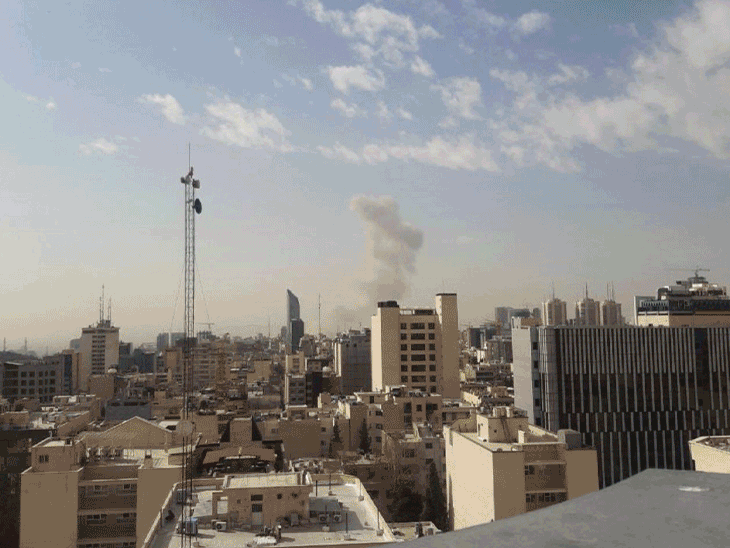 ईरान की राजधानी तेहरान में आसमान में धुएं का गुबार उठता नजर आया।