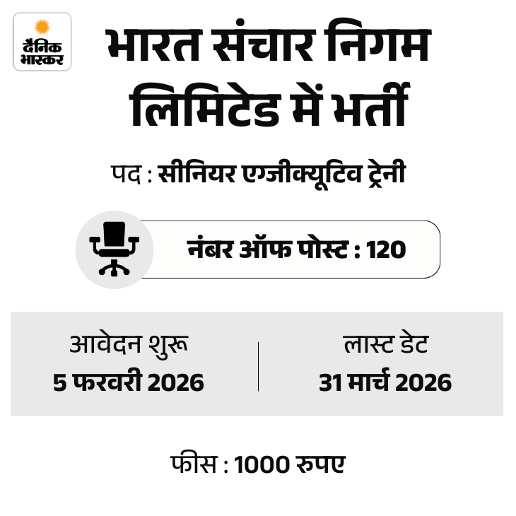 4. BSNL में 120 पदों पर भर्ती, लास्ट डेट 31 मार्च