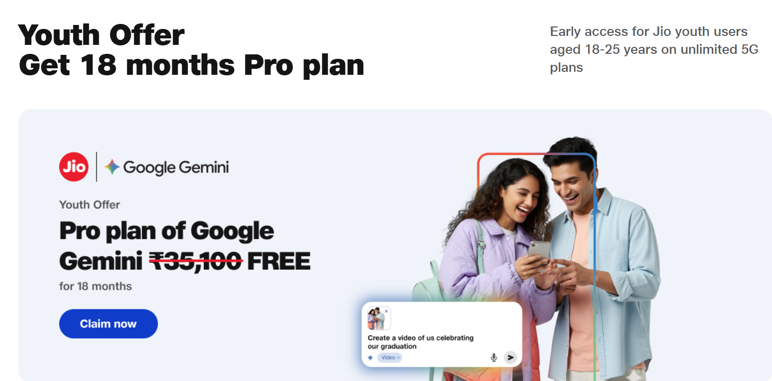 - Jio Partners With Google To Offer Gemini Pro AI Worth ₹35,000 Free For Students | 18 Month Subscription