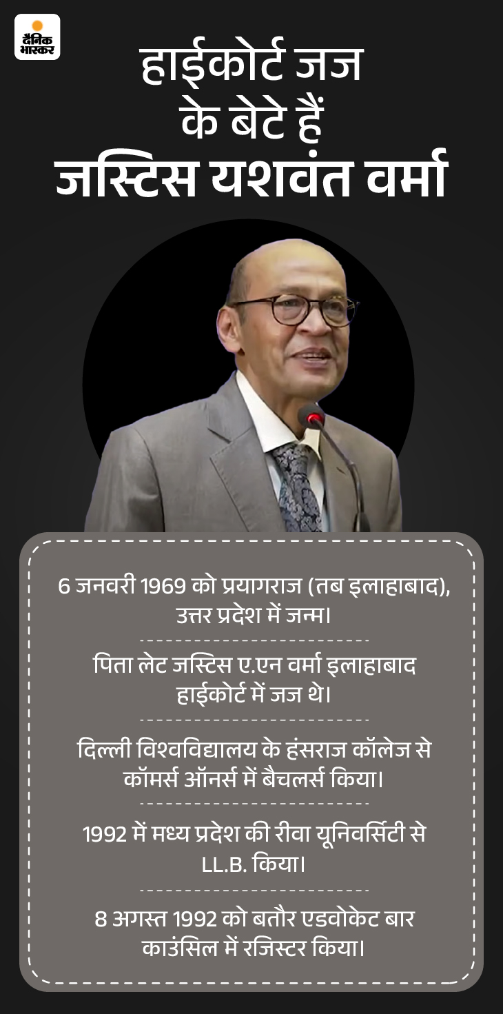 मार्च 2024 में दिल्ली के उनके क्रेसेंट बंगले में आग लग गई थी। फायर ब्रिगेड की टीम जब मौके पर पहुंची तो उसे 500 के बंडलों के जले हुए ढेर मिले थे। मामला पब्लिक में आया तो जस्टिस यशवंत को दिल्ली हाईकोर्ट से ट्रांसफर कर इलाहाबाद हाईकोर्ट भेज दिया गया। वहां उन्होंने 5 अप्रैल 2025 को शपथ तो ली, लेकिन उन्हें कोई जिम्मेदारी नहीं सौंपी गई थी। वे 5 जनवरी 2031 को रिटायर होने वाले थे।