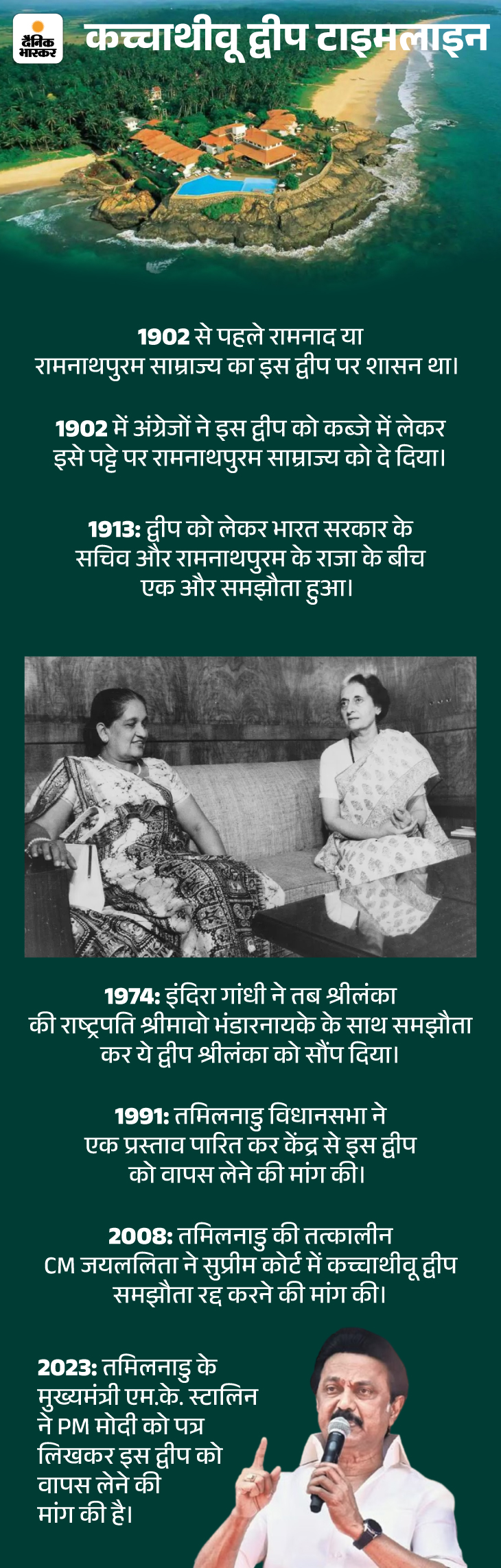 इससे पहले भारत के विदेश मंत्री एस जयशंकर ने 1 अप्रैल को भारत-श्रीलंका के बीच स्थित कच्चाथीवू द्वीप पर प्रेस कॉन्फ्रेंस की थी। उन्होंने आरोप लगाया था कि इंदिरा सरकार ने 1974 में भारत का ये द्वीप श्रीलंका को दे दिया था।