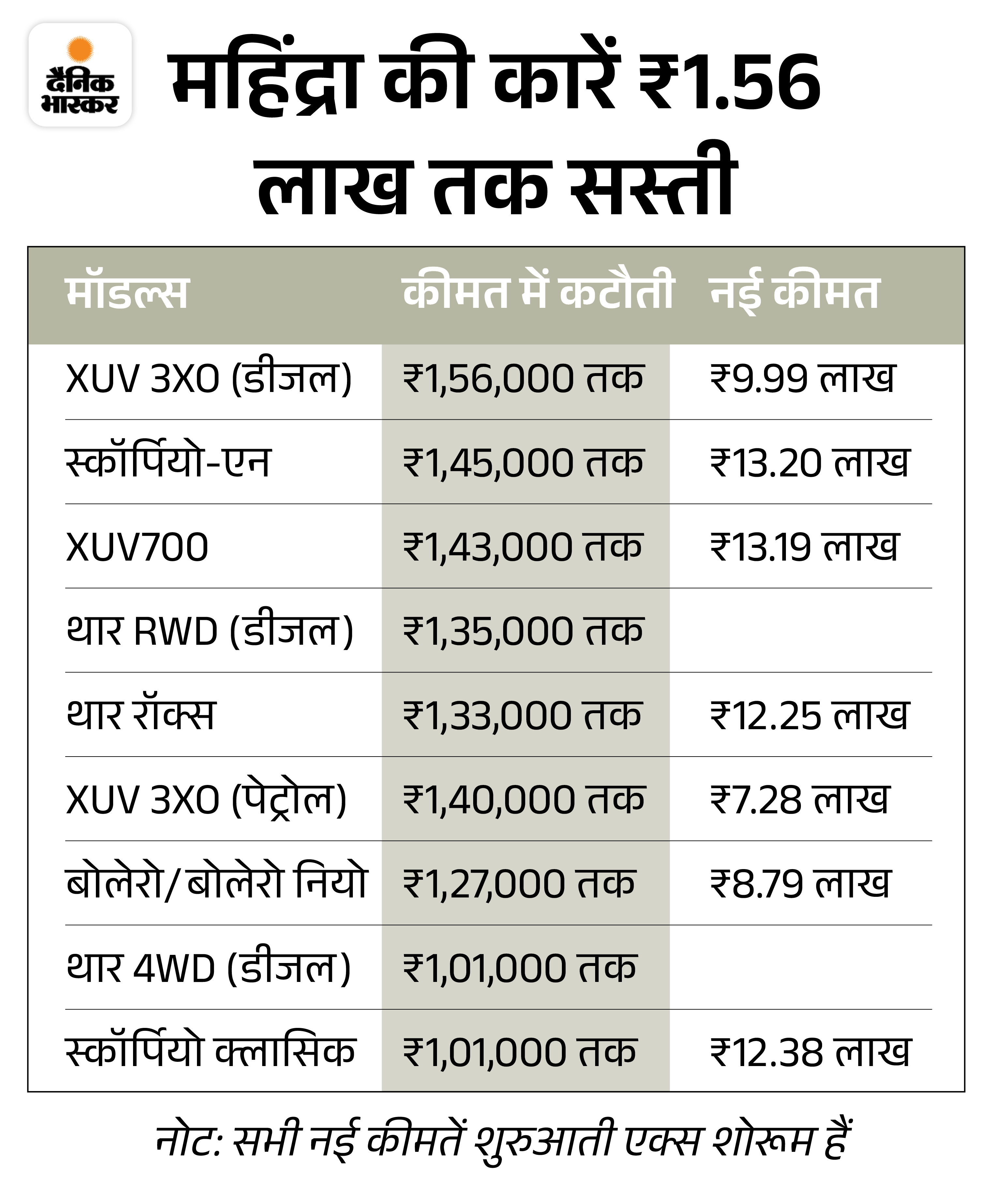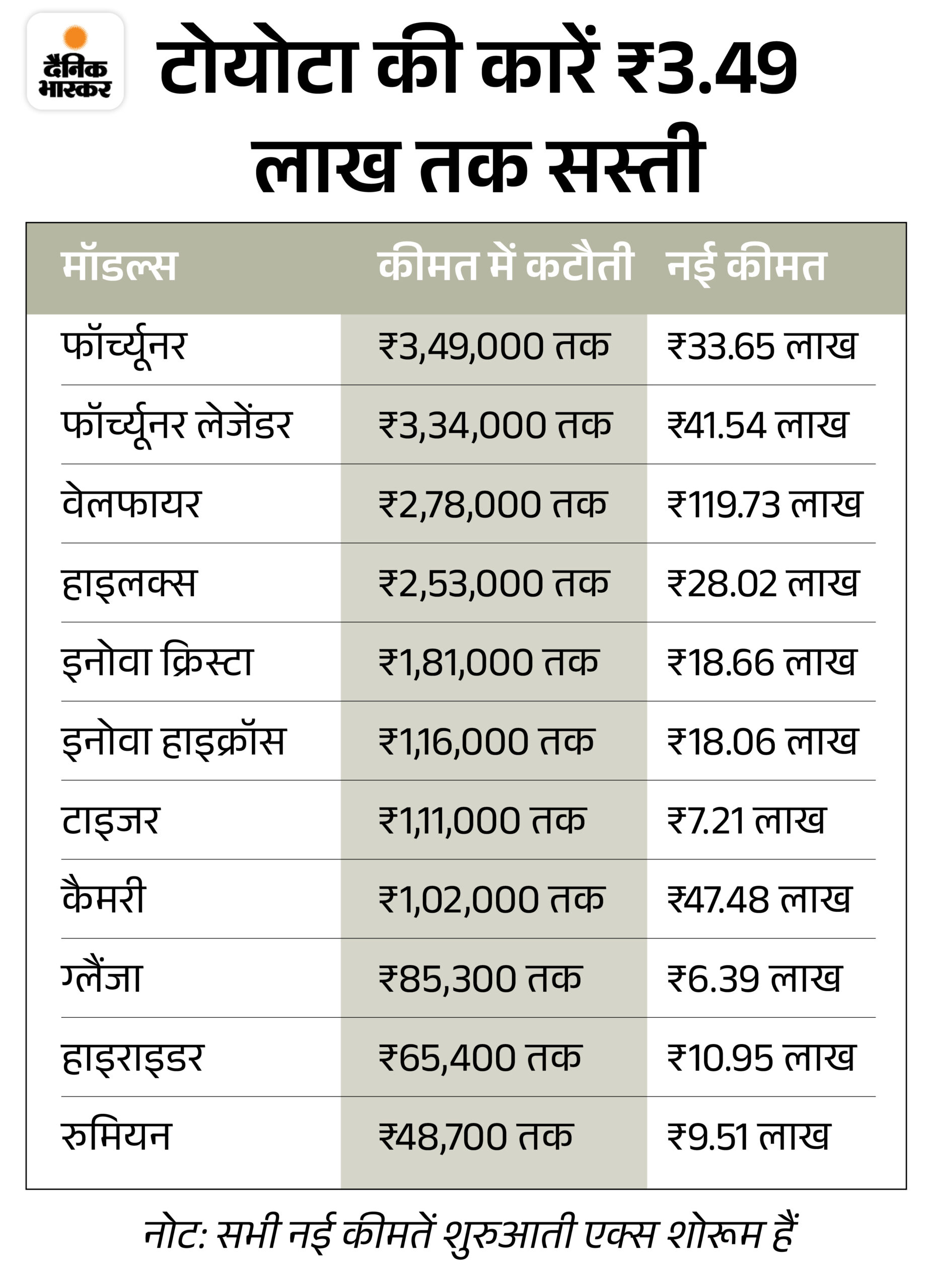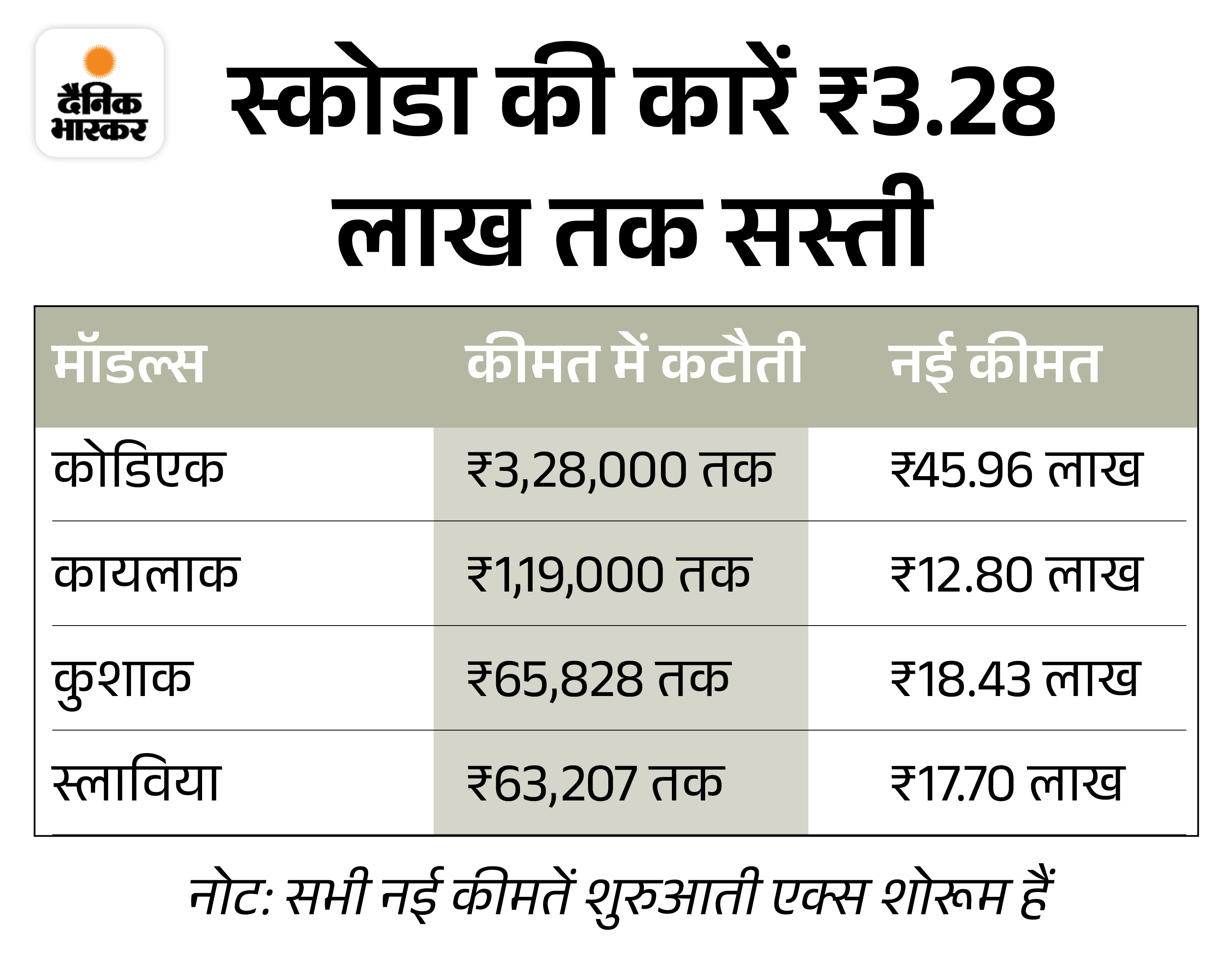 ऐसे में मारुति स्विफ्ट, वैगनार, ऑल्टो, टाटा टियागो और हुंडई i10, किआ सिरोस जैसी फैमिली कारें अब 10-15% यानी 70 हजार से 4.49 लाख रुपए तक सस्ती हो गई हैं। तो आइए ग्राफिक्स में जानते हैं कौन सी कर कितने रुपए तक सस्ती हुई।
