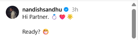 नंदीश सिंह संधू ने इंस्टाग्राम पर अपनी मंगेतर कविता बनर्जी के साथ कुल 8 तस्वीरें पोस्ट की हैं, जिनमें दोनों को अलग-अलग अंदाज में पोज देते देखा जा सकता है। इस पोस्ट के कैप्शन में नंदीश ने लिखा, हाय पार्टनर