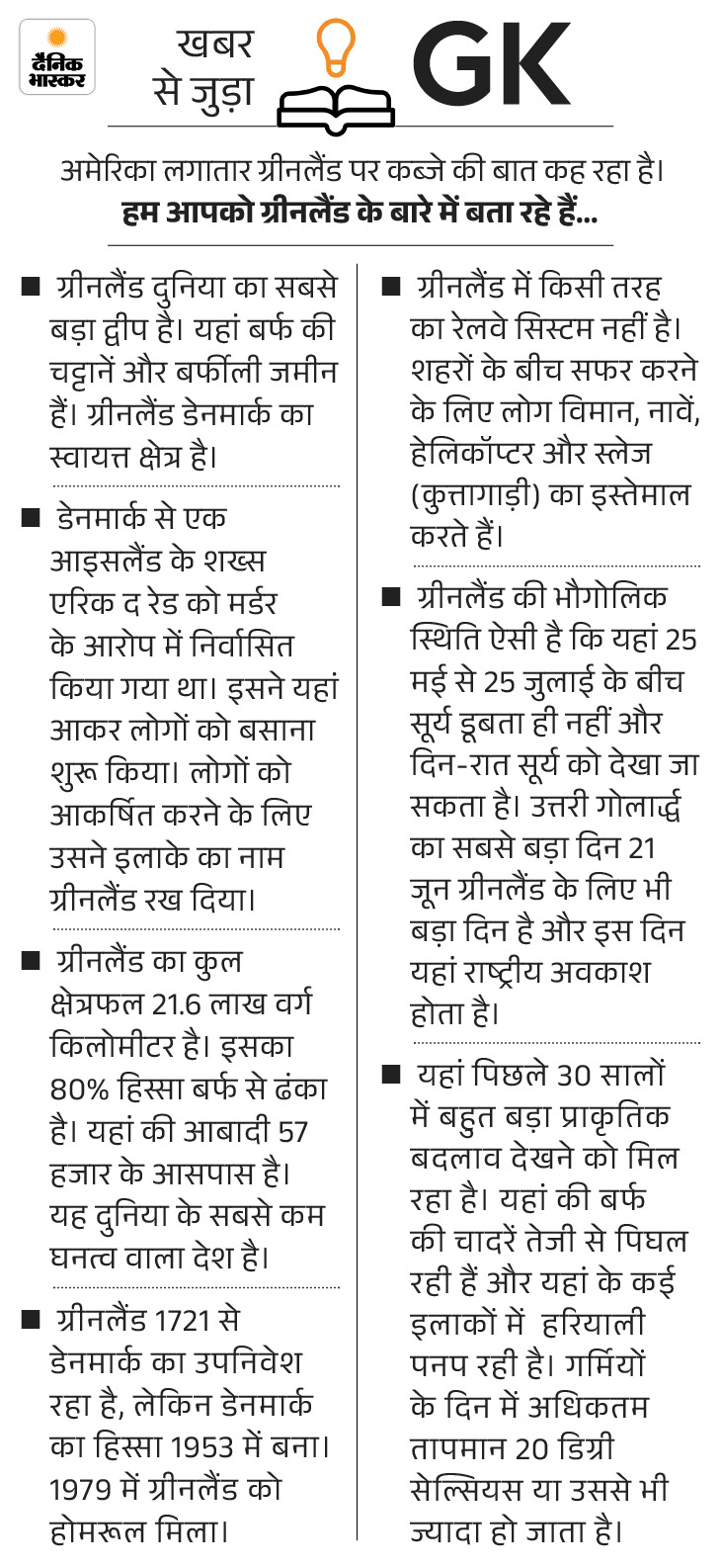 अमेरिकी राष्ट्रपति डोनाल्ड ट्रम्प ने वर्ल्ड इकोनॉमिक फोरम (WEF) में कहा था कि ग्रीनलैंड की सुरक्षा अमेरिका के अलावा कोई और देश नहीं कर सकता।