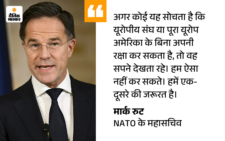 NATO के महासचिव मार्क रुट ने सोमवार को ब्रुसेल्स में यूरोपीय संसद को संबोधित करते हुए चेतावनी दी कि यूरोप अमेरिका के बिना खुद की रक्षा नहीं कर सकता।
