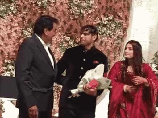 रिसेप्शन में पहुंचे एक बच्चे ने घुटनों पर बैठकर नीरज-हिमानी को गुलाब दिया। यह देखकर दोनों मुस्कुराने लगे और तुरंत ही नीरज ने बच्चे को हाथों से पकड़कर उठाया।