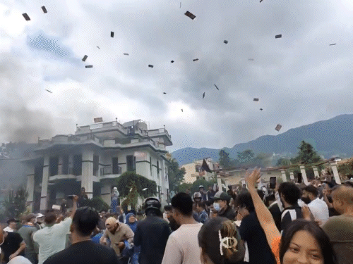 प्रदर्शनकारियों ने ऊर्जा मंत्री दीपक खड़का के घर से बरामद नोटों को हवा में उड़ाया।