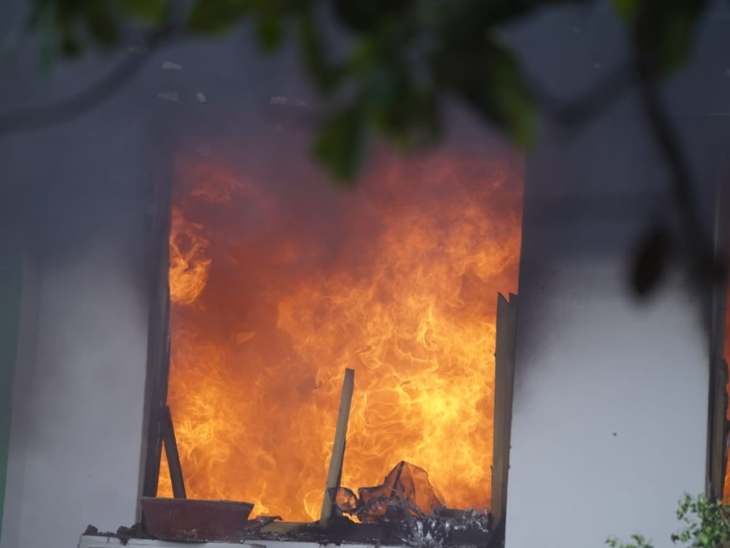 हिंसक प्रदर्शनकारियों ने राष्ट्रपति आवास शीतल भवन में आग लगाई।