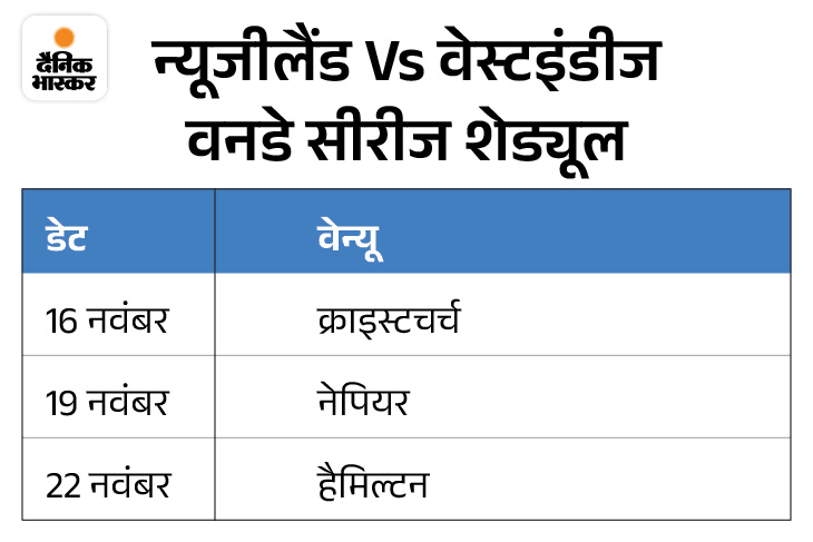 न्यूजीलैंड क्रिकेट टीम ने वेस्टइंडीज के खिलाफ तीन मैचों की वनडे सीरीज के लिए अपनी टीम का ऐलान कर दिया है। यह सीरीज 16 नवंबर से क्राइस्टचर्च में शुरू होगी।