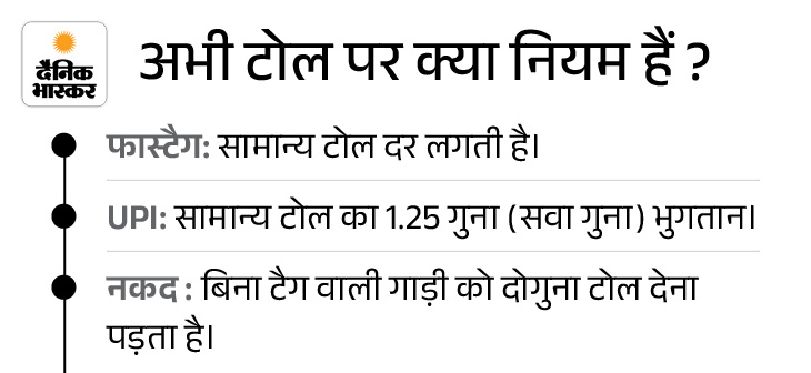 इसके बाद टोल का भुगतान केवल फास्टैग (FASTag) या UPI जैसे डिजिटल माध्यमों से ही हो सकेगा। NHAI का उद्देश्य टोल ऑपरेशन को ज्यादा पारदर्शी और सही बनाना है। अभी देश के 1,150 से ज्यादा टोल प्लाजा पर इलेक्ट्रॉनिक टोल कलेक्शन सिस्टम लागू है।