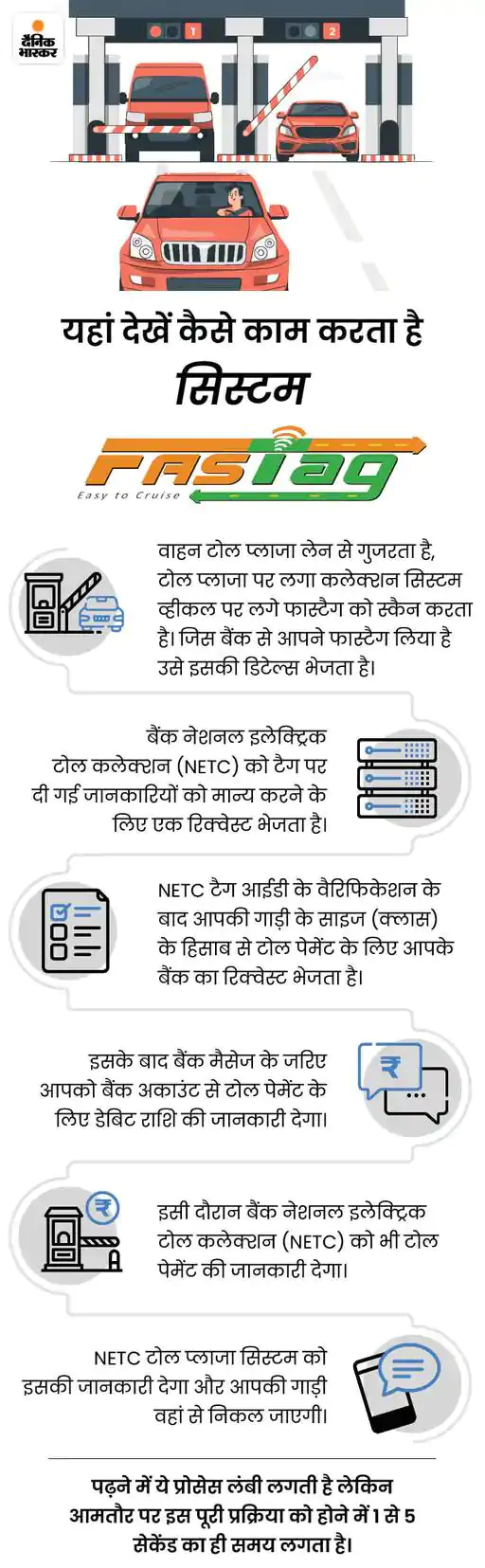 98% गाड़ियों पर पहले से ही लगा है FASTag देश में फास्टैग का इस्तेमाल काफी तेजी से बढ़ा है। आंकड़ों के अनुसार, फिलहाल 98% से ज्यादा वाहनों में फास्टैग लगा हुआ है। नेशनल हाईवे शुल्क नियमों के मुताबिक, अगर कोई वाहन बिना एक्टिव फास्टैग के टोल प्लाजा की फास्टैग लेन में जाता है और नकद भुगतान करता है, तो उससे दोगुना टोल वसूला जाता है। वहीं, अगर कोई यूजर UPI के जरिए भुगतान करता है, तो उसे लागू टोल दर का 1.25 गुना चार्ज देना होता है।