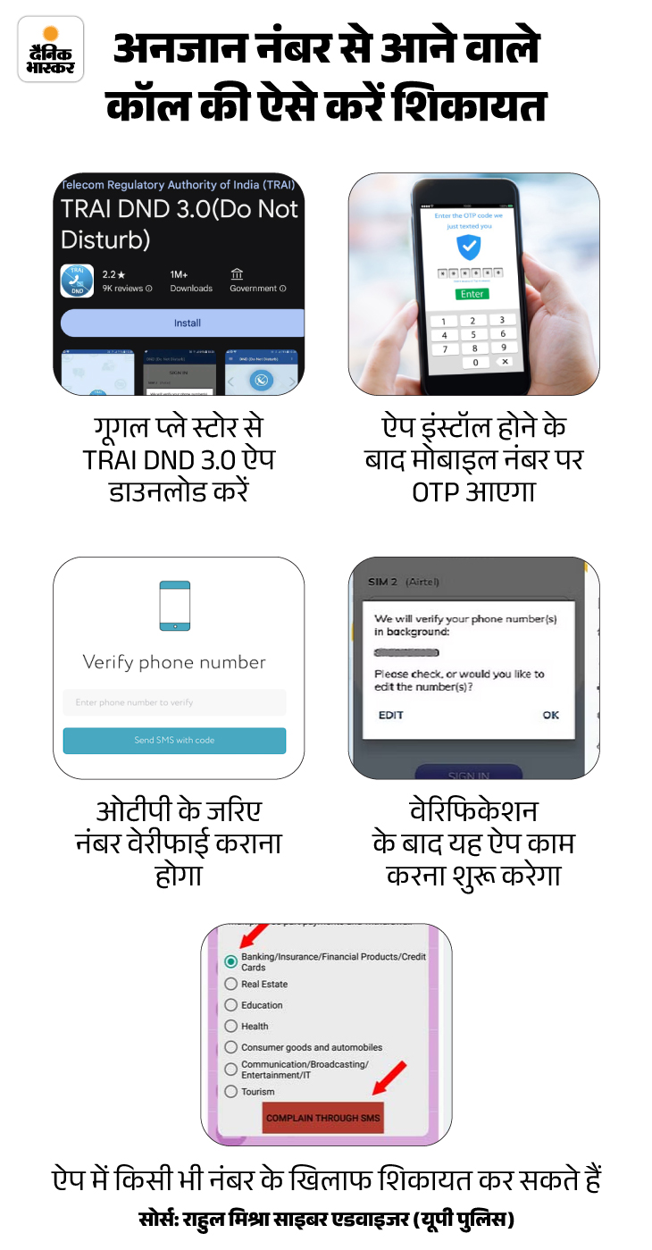 सवाल- स्पैम कॉल या मैसेज क्या होते हैं? जवाब- स्पैम कॉल या मैसेज किसी अनजान नंबर से लोगों को किए जाने वाले कॉल या मैसेज होते हैं। जिसमें लोगों को लोन लेने, क्रेडिट कार्ड लेने, लॉटरी लगने, किसी कंपनी की कोई सर्विस या सामान खरीदने का झांसा दिया जाता है। यह सभी कॉल या मैसेज आपकी अनुमति के बिना की जाती हैं।
