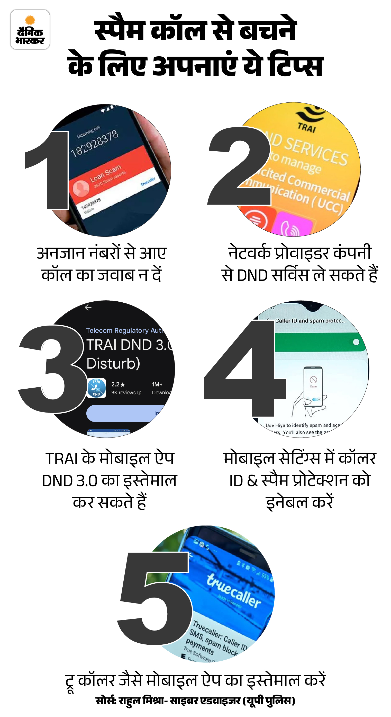 सवाल- स्पैम कॉल आने पर क्या सावधानियां बरतनी चाहिए? जवाब- स्पैम कॉल को पहचानना आसान नहीं है क्योंकि ये नंबर सामान्य मोबाइल नंबर से मिलते-जुलते होते हैं। इसलिए अगर गलती से आपने स्पैम कॉल को उठा लिया है तो कुछ सावधानियां बरतनी चाहिए। जैसे कि-