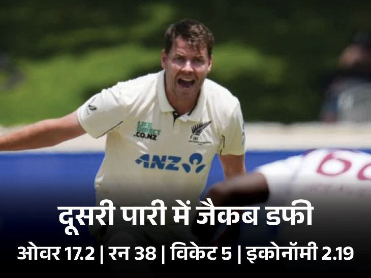 जैकब डफी (सेलिब्रेट करते हुए) ने पहली पारी में 1 और दूसरी पारी में 5 विकेट लिए।