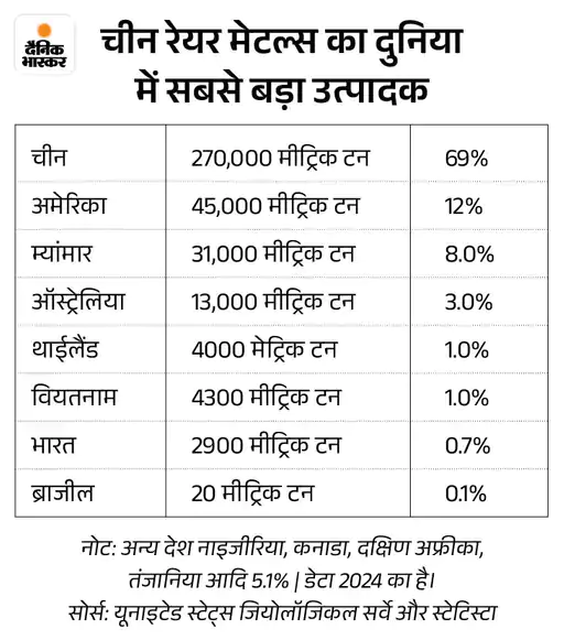 बता दें कि ग्लोबल लेवल पर रेयर मटेरियल्स की माइनिंग में चीन की हिस्सेदारी करीब 70% और प्रोडक्शन में करीब 90% तक है। चीन ने हाल ही में अमेरिका के साथ बढ़ती ट्रेड वॉर के बीच 7 कीमती धातुओं (रेयर अर्थ मटेरियल) के निर्यात पर रोक लगा दी थी।