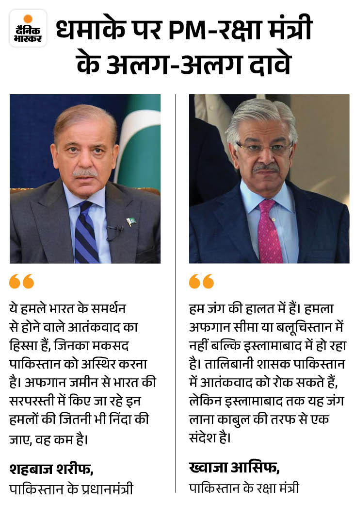 PM शहबाज ने इस हमले के लिए भारत को जिम्मेदार बताया है। जबकि रक्षामंत्री ख्वाजा आसिफ ने अफगान सरकार पर हमले का आरोप लगाया।